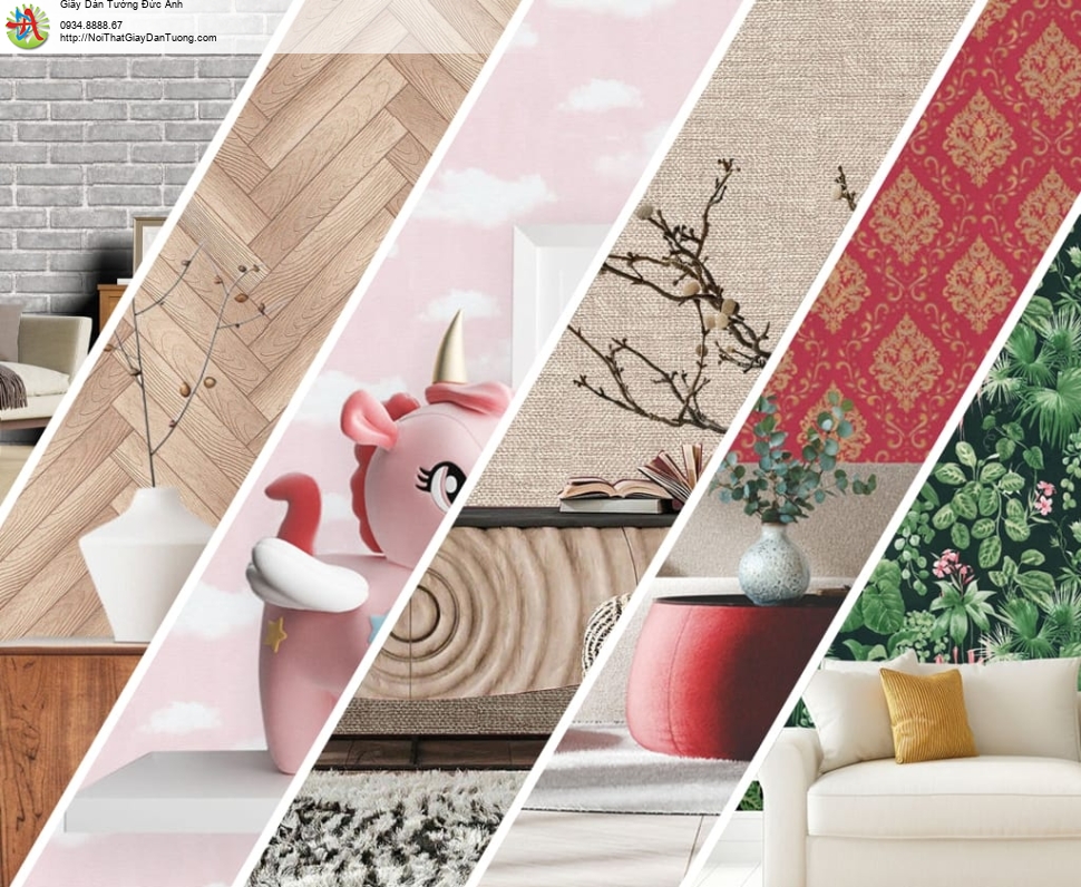 Mẫu mã đa dạng: “giả gỗ”, “hoa văn cổ điển”, “giả gạch”, màu trơn, hiện đại & đơn giản.