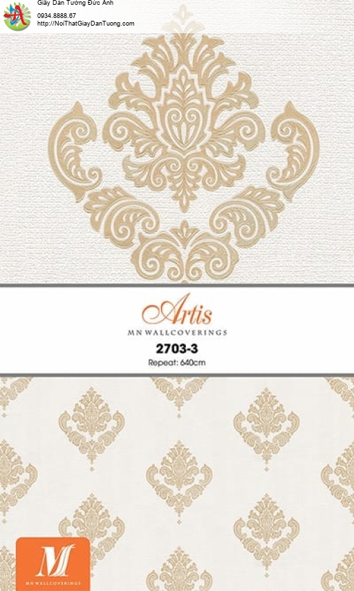 Giấy dán tường cổ điển phong cách châu âu sang trọng màu vàng - Artis 2703-3