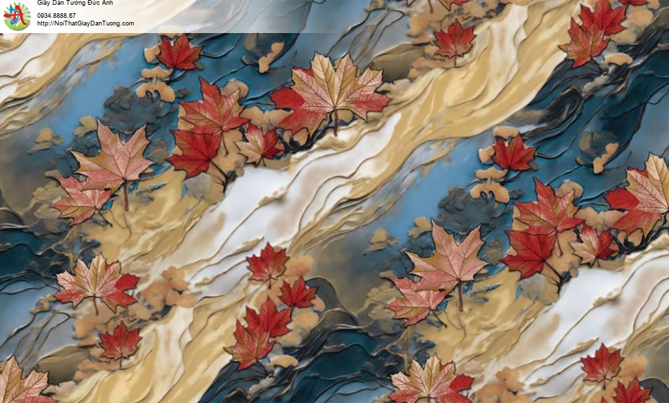 Giấy dán tường điểm nhấn ấn tượng độc đáo lá phong trôi theo dòng thời gian - LUX020
