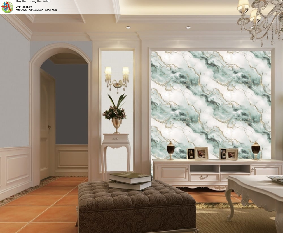 Giấy dán tường điểm nhấn phòng khách, giả vân đá marble màu xanh trắng - LUX003