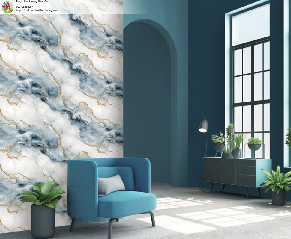 Giấy dán tường điểm nhấn phòng ngủ, giả vân đá marble trắng xanh - LUX004