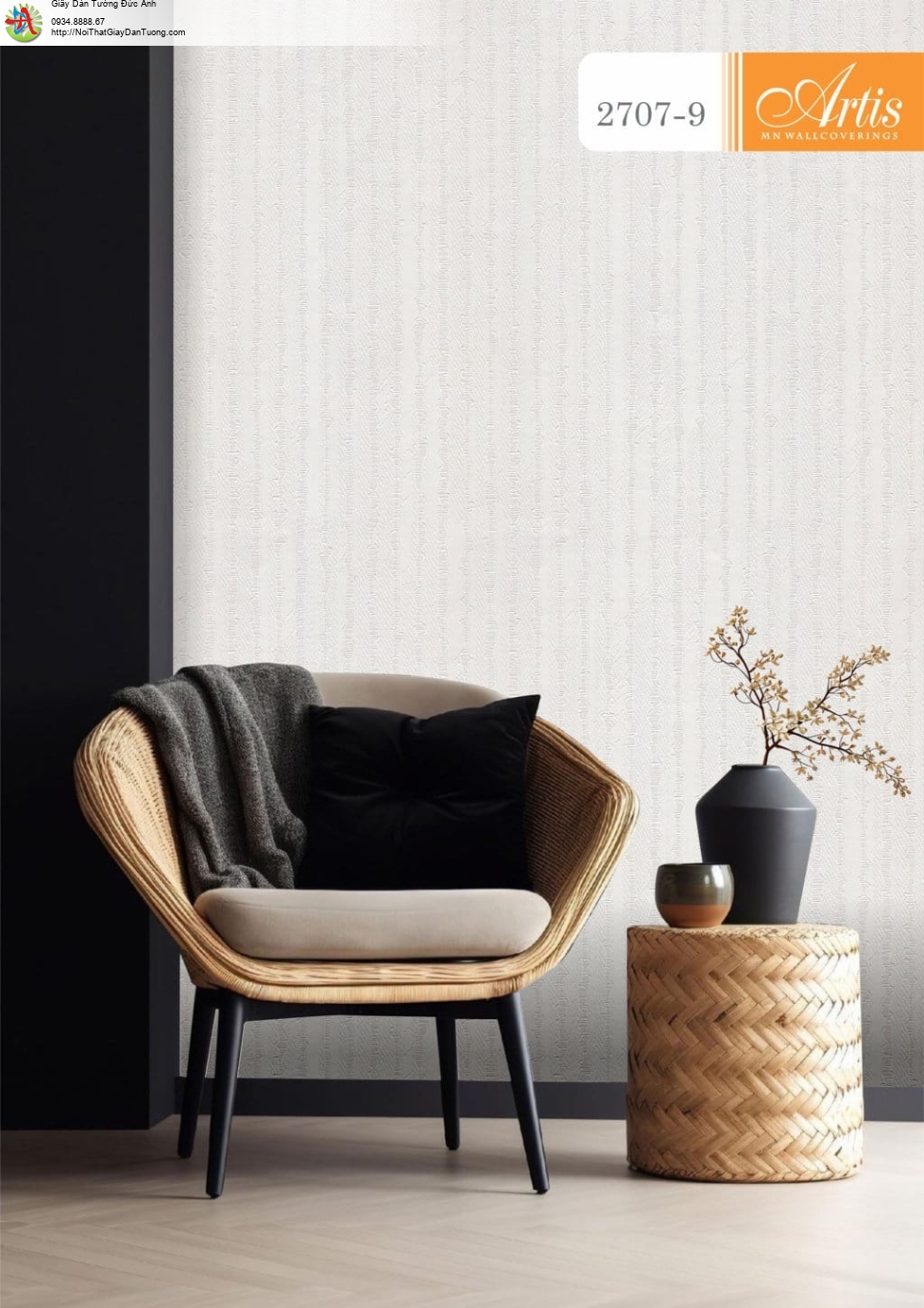 Giấy dán tường gân sọc màu trắng - Artis 2707-9