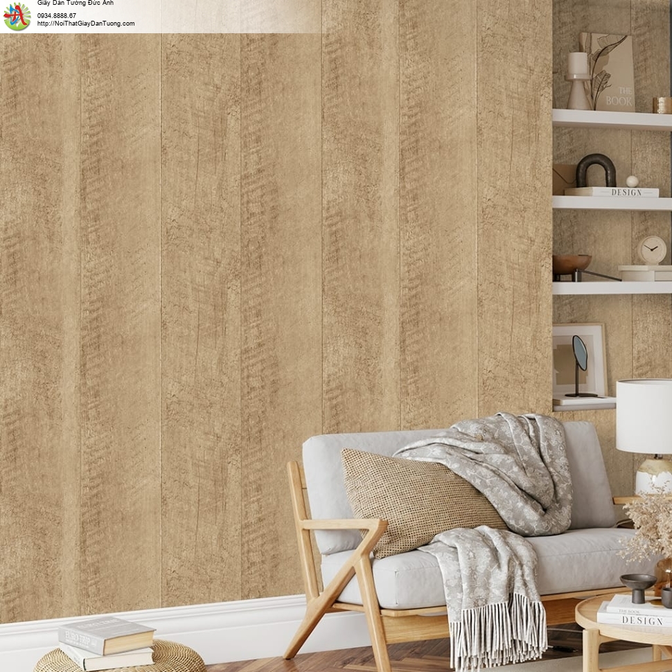Đa dạng màu sắc và kiểu vân: Giấy dán tường giả gỗ có nhiều tông màu và kiểu vân khác nhau, từ các tông màu vàng, nâu ấm áp, đến các tông màu xám, trắng hiện đại, phù hợp với mọi phong cách thiết kế.