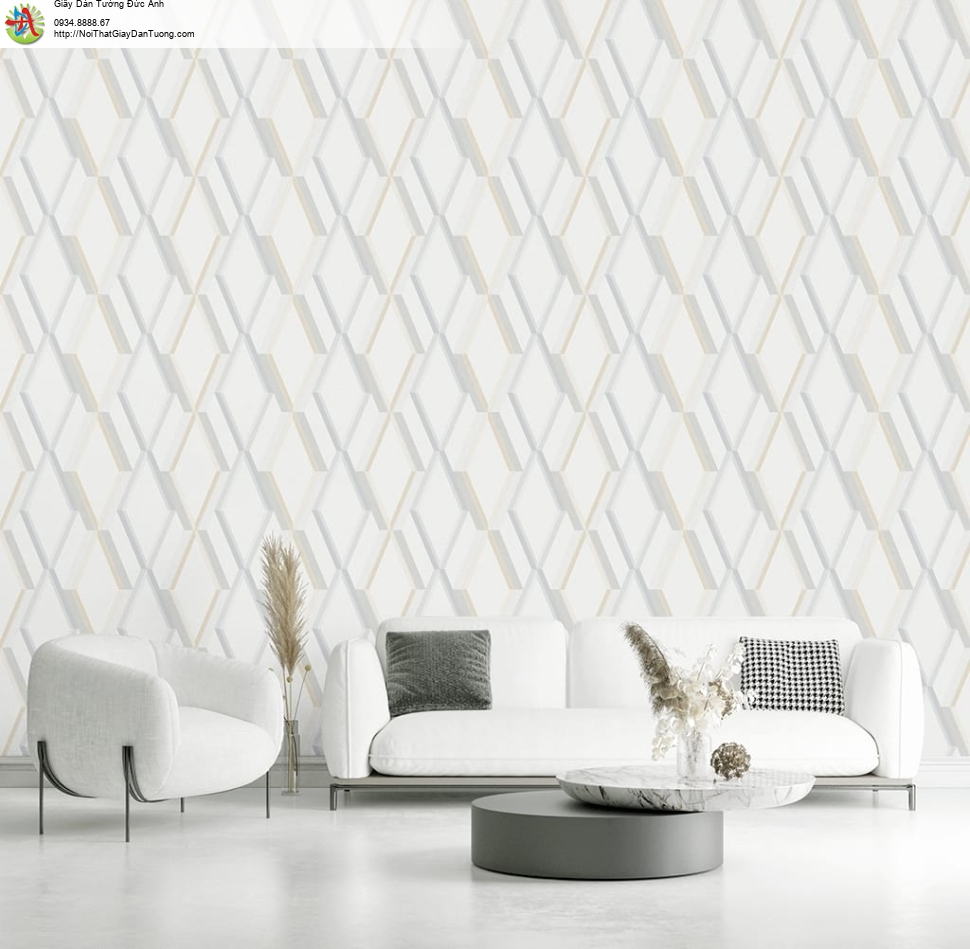 Giấy dán tường hình ca rô 3D hiện đại màu xám trắng - Joinus 8622-1