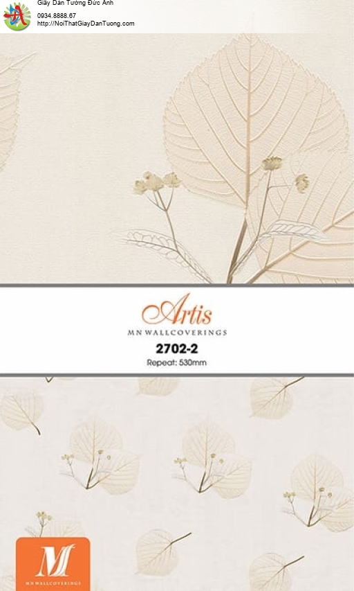 Giấy dán tường hình lá cây màu vàng, xương lá - Artis 2702-2