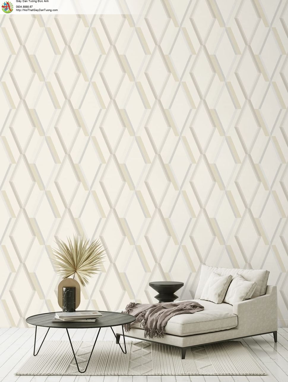 Giấy dán tường họa tiết ca rô 3D ấn tượng màu vàng kem - Joinus 8622-2