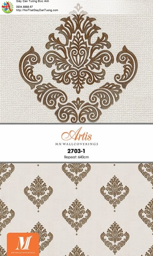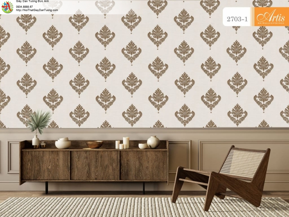 Giấy dán tường họa tiết cổ điển màu nâu - Artis 2703-1