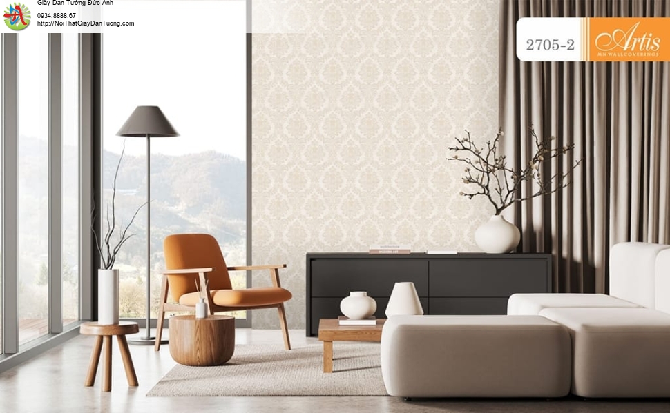 Giấy dán tường họa tiết cổ điển màu vàng nhạt - Artis 2705-2