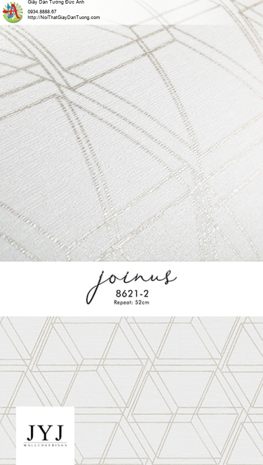Giấy dán tường họa tiết hình học lục giác tam giác tứ giác màu xám nhạt - Joinus 8621-2