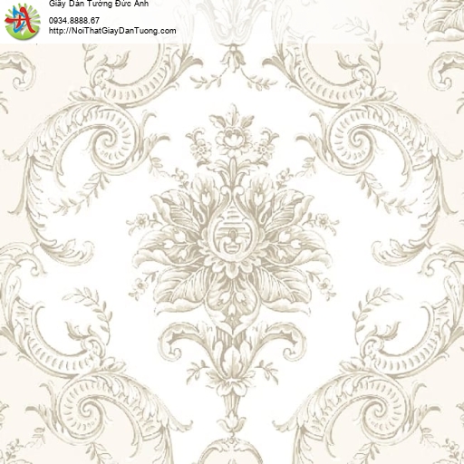 Giấy dán tường hoa văn cổ điển màu trắng - Contessa 4007-1