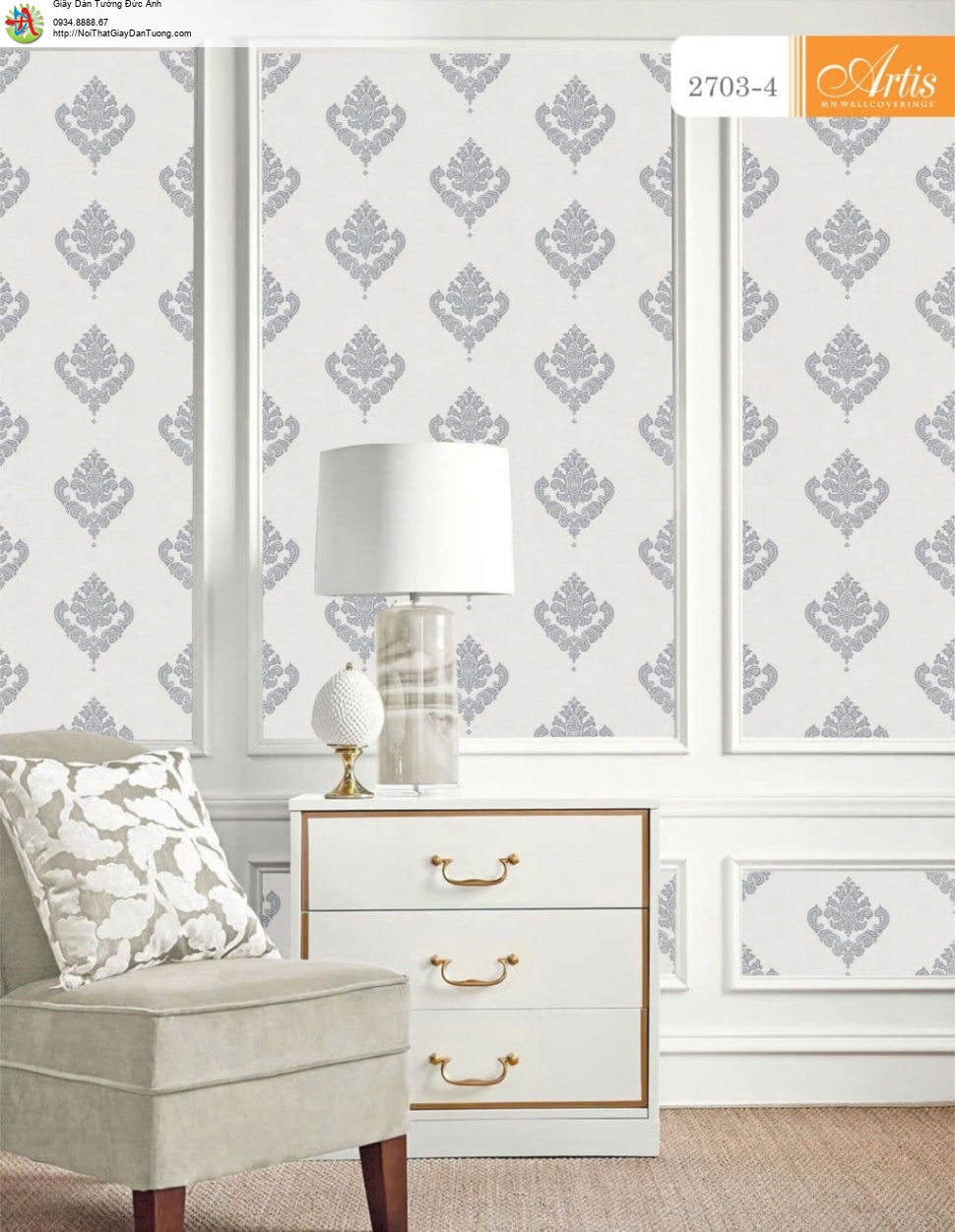 Giấy dán tường hoa văn cổ điển màu xám - Artis 2703-4