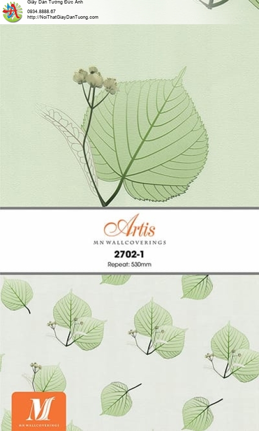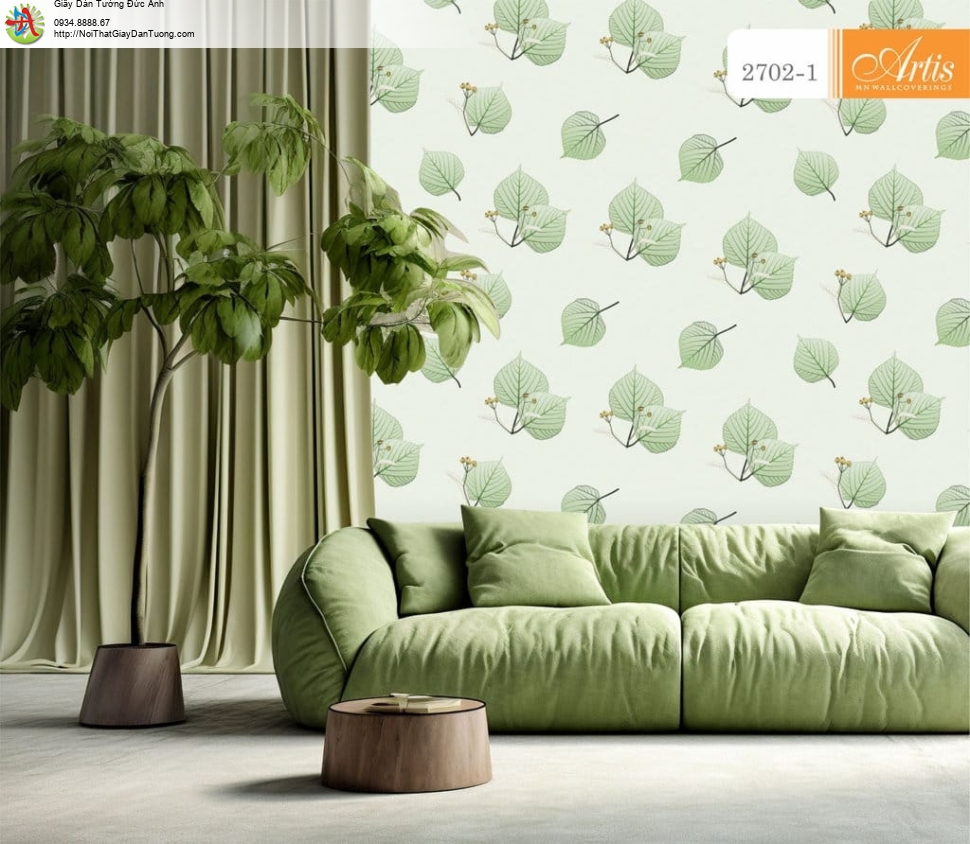 Giấy dán tường lá cây xương màu xanh - Artis 2702-1