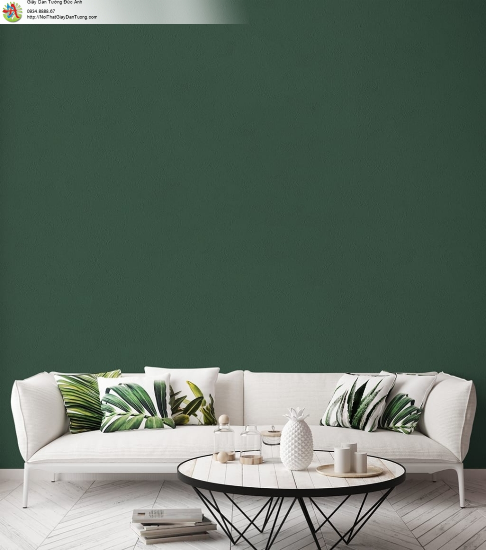 Màu trơn với vân nổi: Giấy dán tường màu xanh ngọc trơn nhưng có các vân nổi 3D (như vân vải, vân lụa) sẽ tạo ra chiều sâu và sự tinh tế cho bức tường, tránh cảm giác đơn điệu.