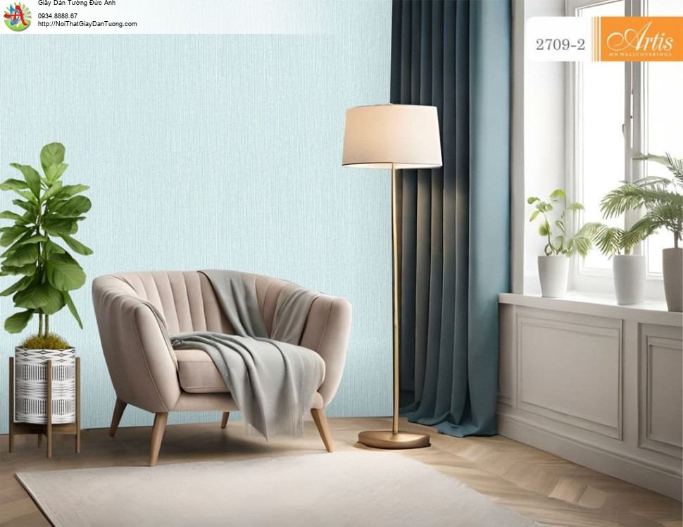 Giấy dán tường màu xanh nhạt xanh lơ - Artis 2709-2