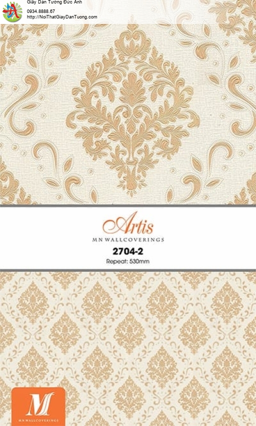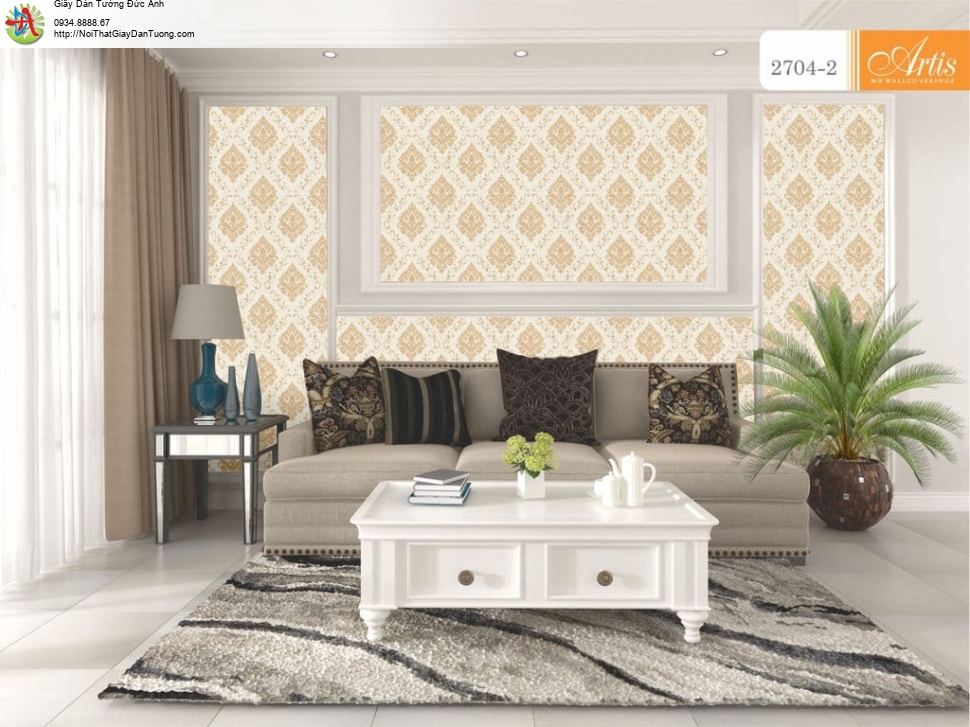 Giấy dán tường sang trọng phong cách cổ điển màu vàng - Artis 2704-2