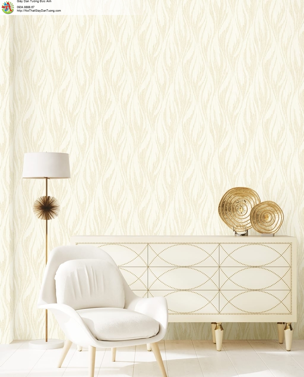 Giấy dán tường uốn lượn sóng mềm mại kim tuyến kim sa màu vàng nhạt - Joinus 8623-2