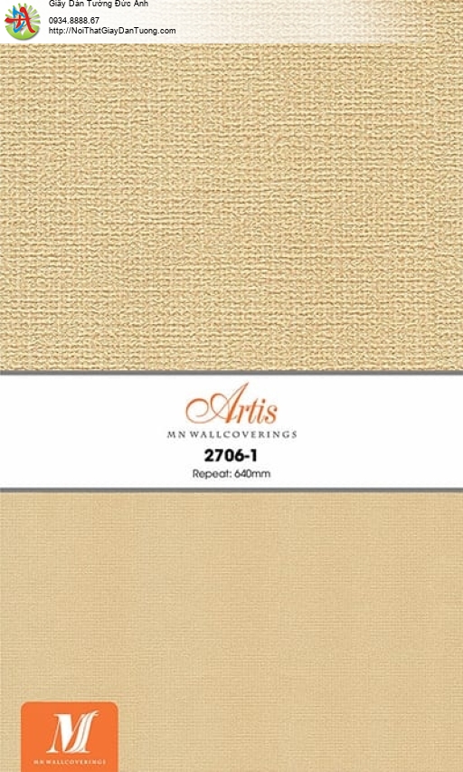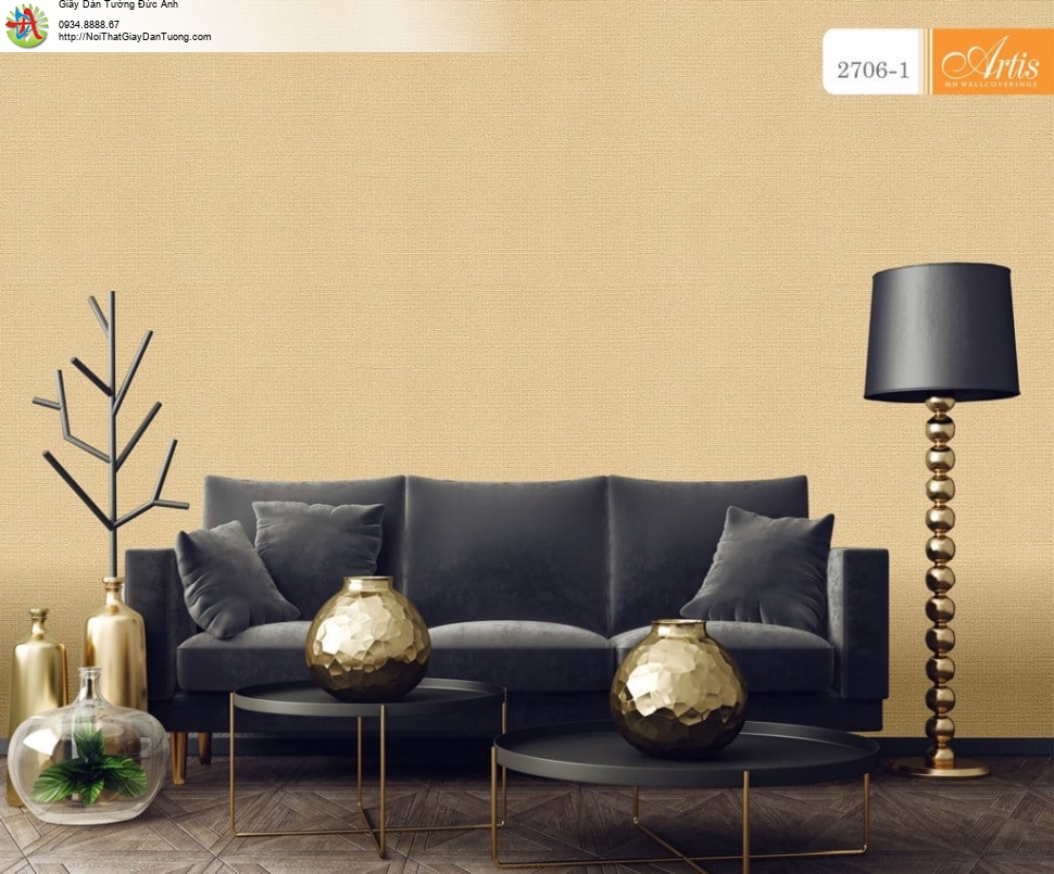 Giấy dán tường vân nổi màu vàng đậm - Artis 2706-1